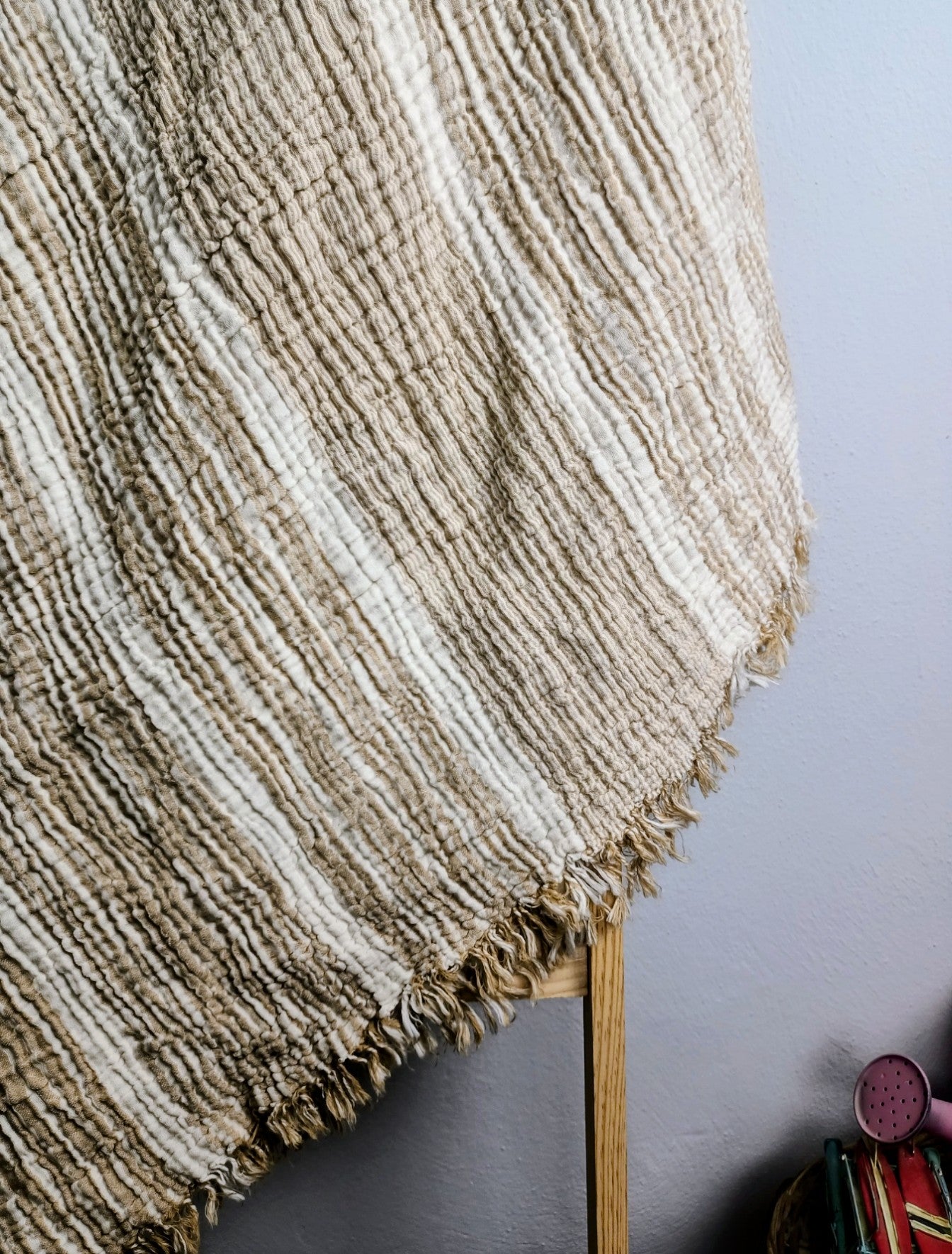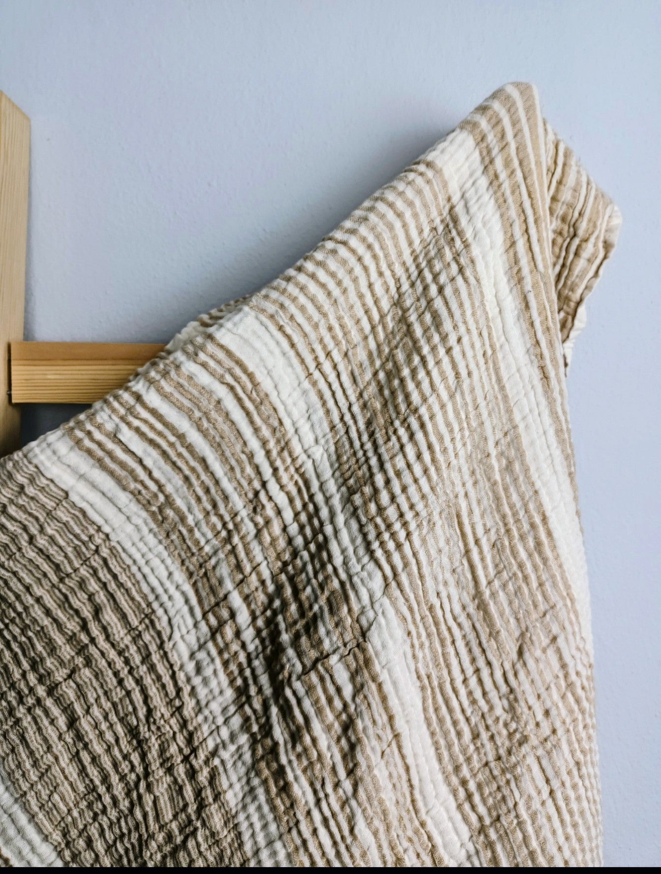 Upplev en ny nivå av mjukhet med vår kollektion av 4-lagers muslinhanddukar, tillverkade av 100% naturlig bomull. Muslin, känt för sin otroliga lätthet och andningsförmåga, blir bara mjukare med varje tvätt. Den unika väven med fyra lager skapar en härlig, skrynklig textur som inte bara är vacker utan också mycket absorberande.