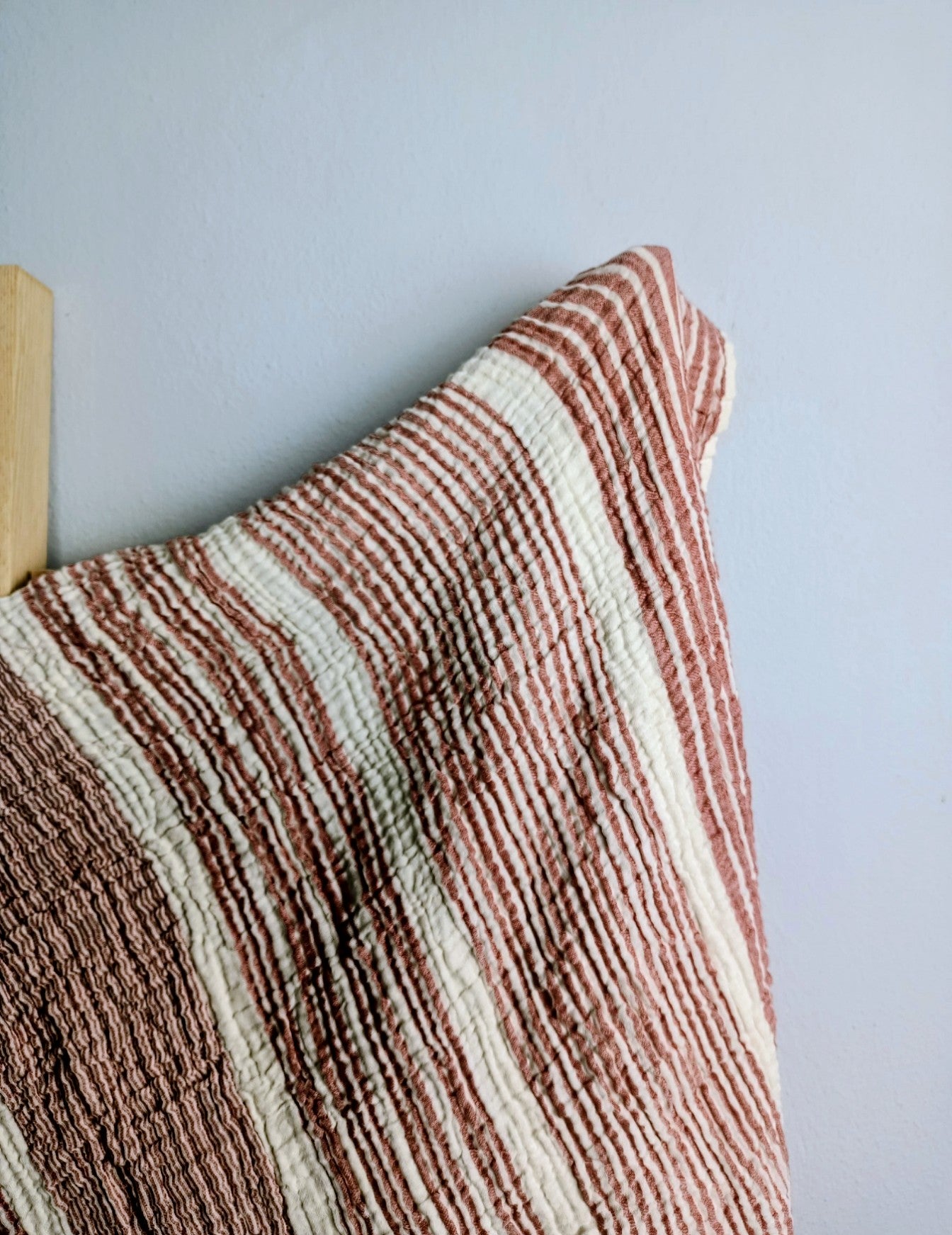 Dessa mångsidiga handdukar är den perfekta följeslagaren överallt. Använd dem som en extra fluffig badhandduk hemma, som en snabbtorkande och snygg handduk på stranden, eller som en elegant pläd under en picknick. De klassiska ränderna i lugnande nyanser som marinblått, tegelrött och kaffe ger en tidlös stil som aldrig går ur tiden.