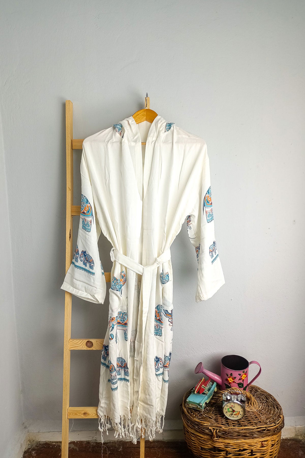 Andningsförmåga och komfort: Materialblandningen gör morgonrocken sval och luftig, vilket är perfekt för varma sommarmorgnar eller när du bara vill koppla av hemma.