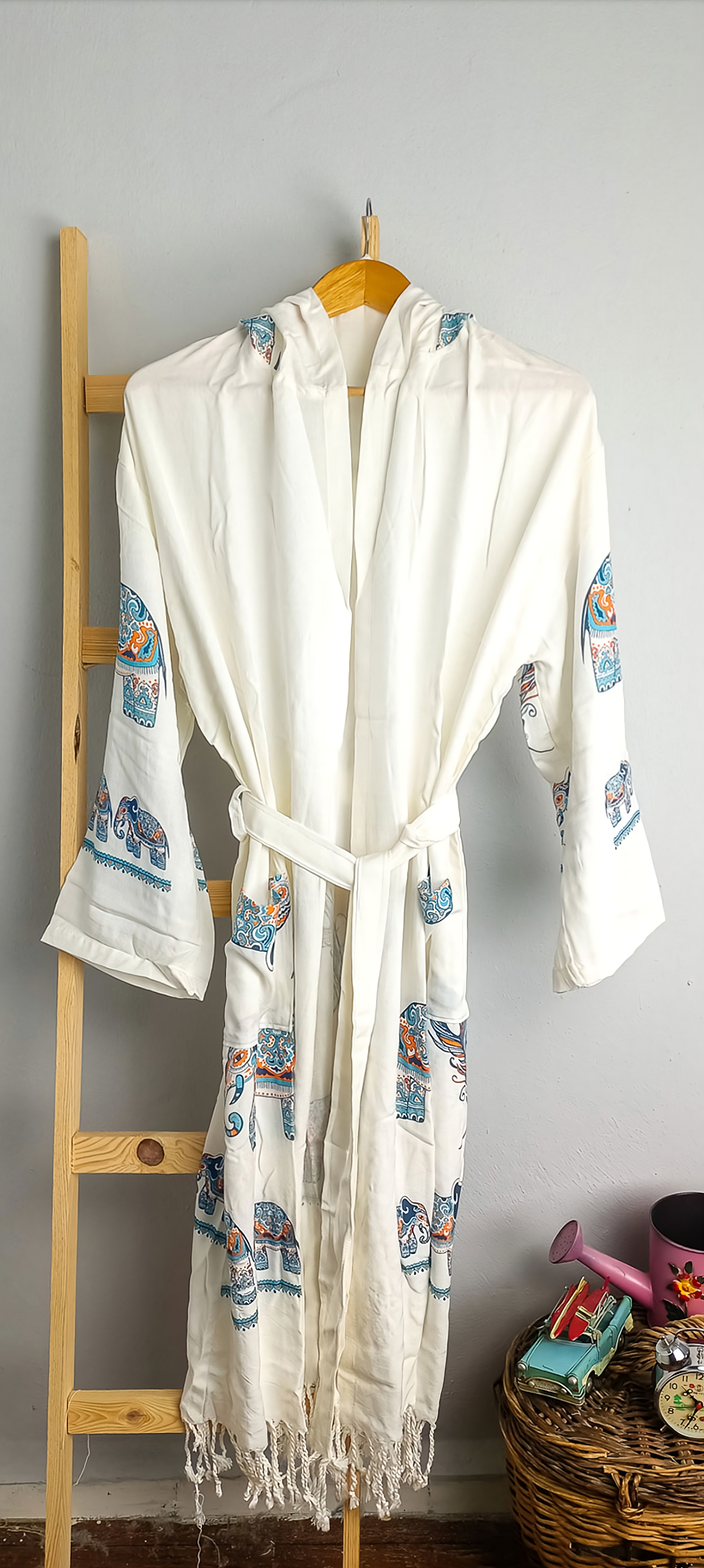 ℹ️ Observera: Denna badrock är EN STORLEK (One Size) och passar bäst storlekarna S, M och L.