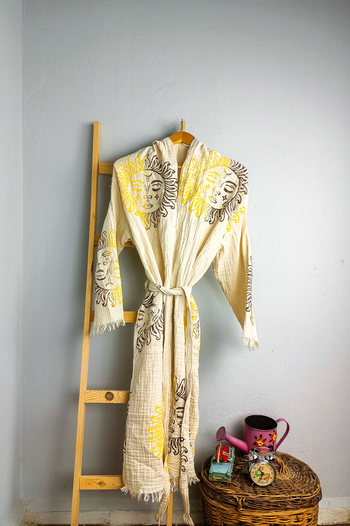 Mångsidiga stilar: De finns i olika stilar, från traditionella frotté-modeller som är tjocka och mysiga, till tunnare kimono-stilar eller våffelvävda mönster. Många har unika, ofta handritade, mönster.
